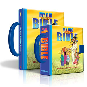 My Big Handy Bible is our retold and illustrated Bible in a large format (195 x 235 mm) for ages 3-7, with 40 of the most loved Bible stories beautifully illustrated. Simple, kid-friendly language and bright artwork teeming with color and life convey the Bible message for kids, in a useful, big format, that works really well when reading aloud to several young viewers under each arm, so everyone can enjoy the warm hearted pictures and follow the stories.